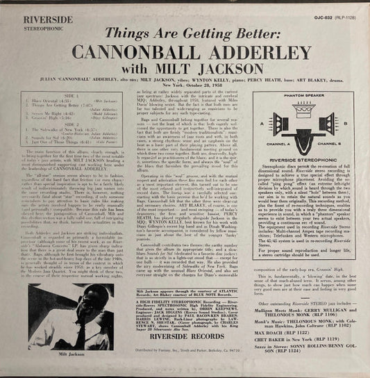 Cannonball Adderley with Milt Jackson - Things Are Getting Better (LP, Album, RE) US 1982 NM or M-