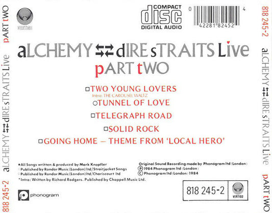 Dire Straits - Alchemy - Dire Straits Live Part Two (CD, Album, Blu) Germany 1984 VG+