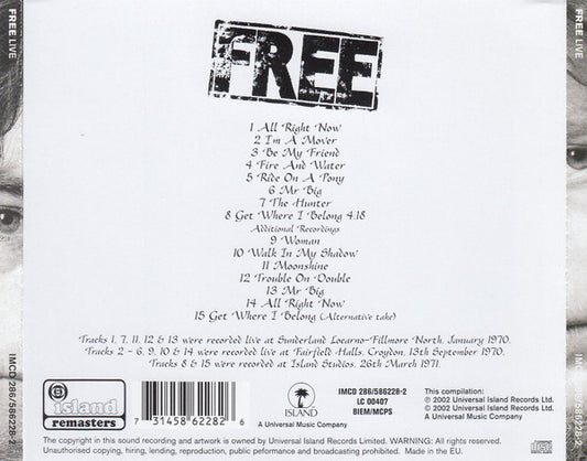 Free - Free Live (CD, Album, RE, RM, Uni) Europe 2002 NM or M-