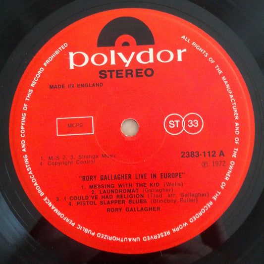 Rory Gallagher - Live! In Europe (LP, Album, Gat) UK 1972 NM or M-