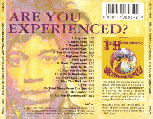 The Jimi Hendrix Experience - Are You Experienced? (CD, Album, RE, RM) US 1993 VG+
