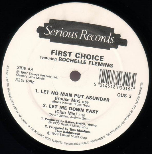 First Choice Featuring Rochelle Fleming - Let No Man Put Asunder / Let Me Down Easy (12") UK 1987 VG+