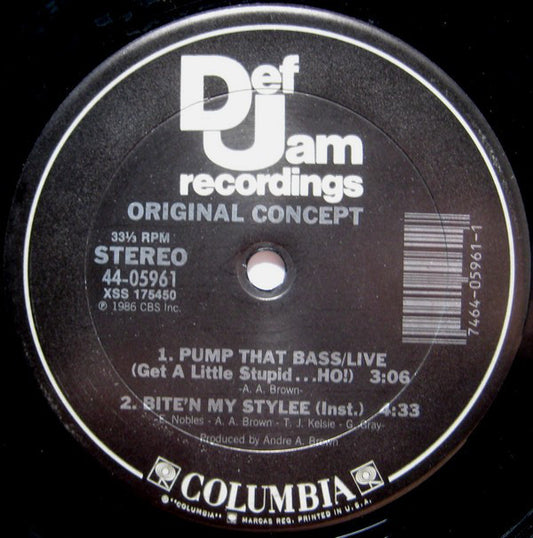 The Original Concept* - Bite'n My Stylee / Pump That Bass - US 12" 1986 - VG
