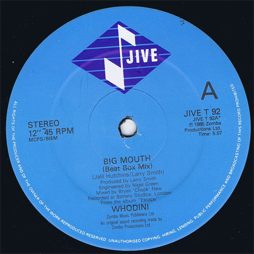 Whodini - Big Mouth - UK 12" 1985 - VG+