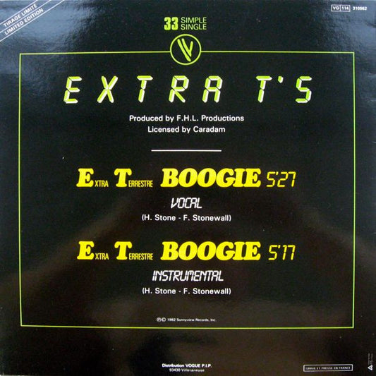 Extra T's - Extra Terrestre Boogie (12", Single, Ltd) France 1982 VG+