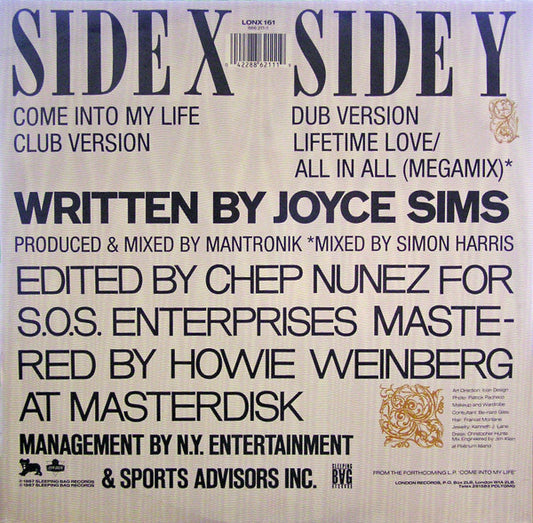 Joyce Sims - Come Into My Life (12") UK 1987 VG+
