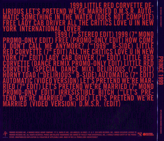 Prince - 1999 (CD, Album, RE + CD, Comp, Mono + Dlx, RM) Europe 2019 NM or M-