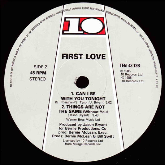 First Love - Things Are Not The Same (Without You) (12") UK 1985 VG+