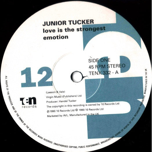 Junior Tucker - Love Is The Strongest Emotion (12") UK 1990 NM or M-