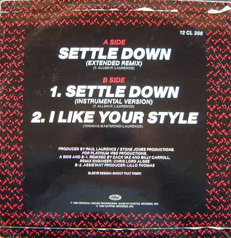 Lillo Thomas - Settle Down / I Like Your Style (12") UK 1984 VG+