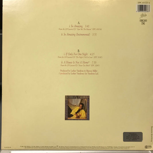 Luther Vandross - So Amazing (12") Netherlands 1987 VG+
