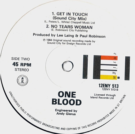One Blood - Get In Touch With Me (12") UK 1984 VG+