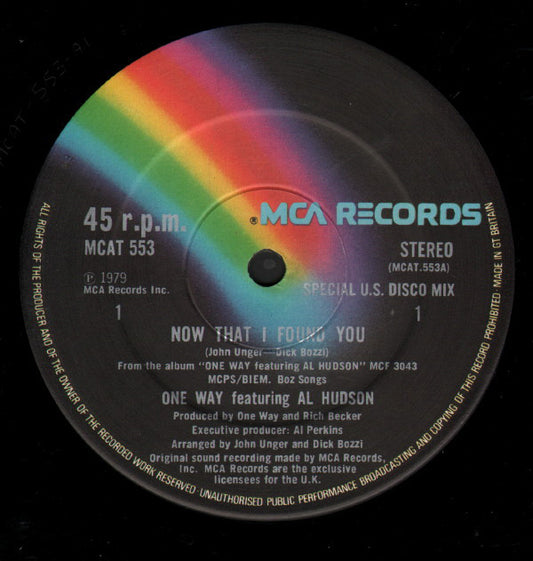 One Way Featuring Al Hudson - Now That I Found You (Special US Disco Mix) (12") UK 1979 VG+