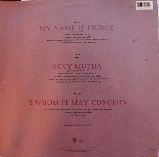 Prince And The New Power Generation - My Name Is Prince - Europe 12" 1992 - NM or M-