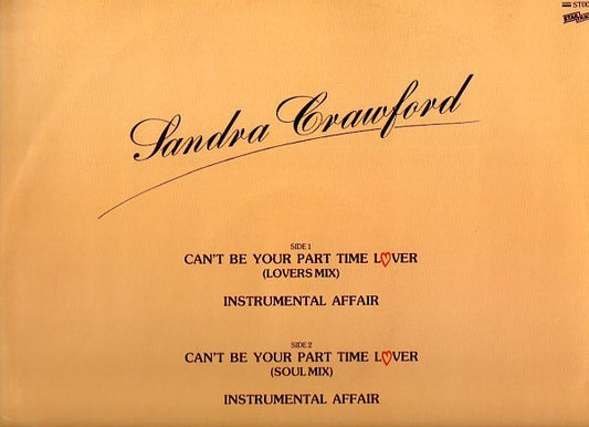 Sandra Crawford - Can't Be Your Part Time Lover - UK 12" 1986 - VG+