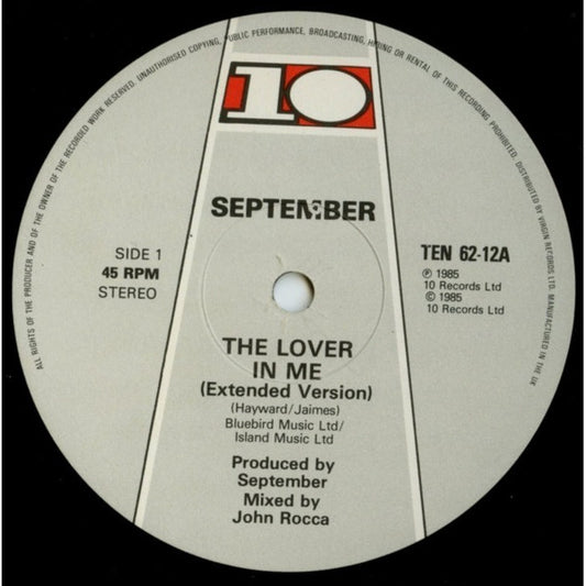 September - The Lover In Me (Extended Version) (12") UK 1985 VG+