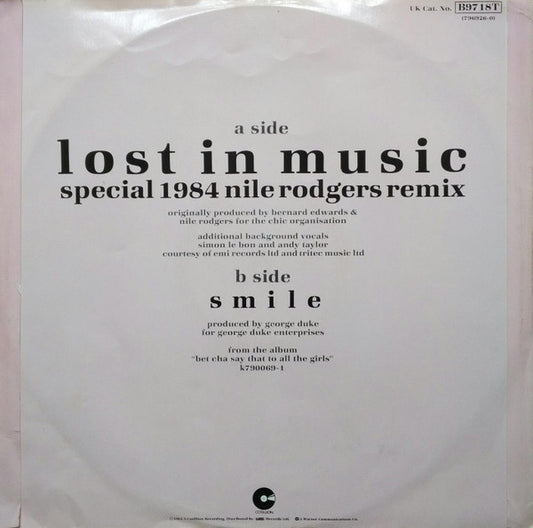 Sister Sledge - Lost In Music (1984 Nile Rodgers Mix) (12", Pla) UK 1984 VG+