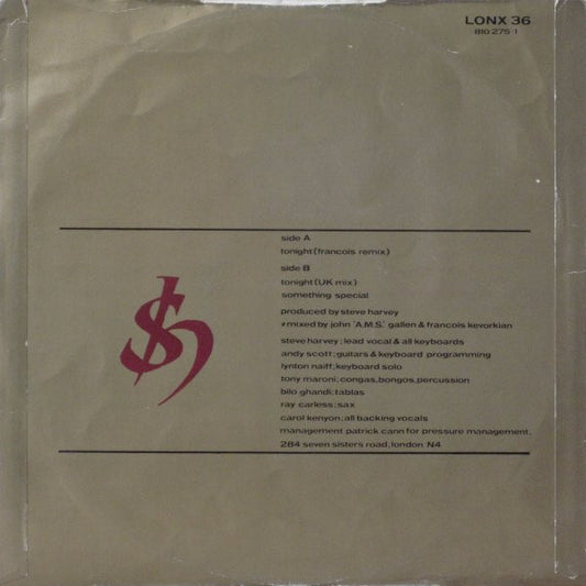 Steve Harvey - Tonight / Something Special (12") UK 1983 VG+