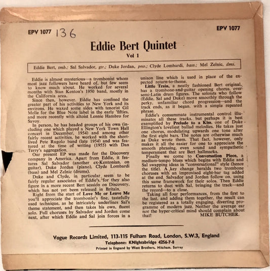 Eddie Bert Quintet - Vol. 1 - UK 7" 1955 - VG
