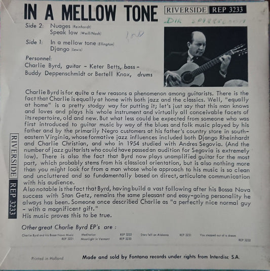 Charlie Byrd - In A Mellow Tone - Netherlands 7" 0 - VG+