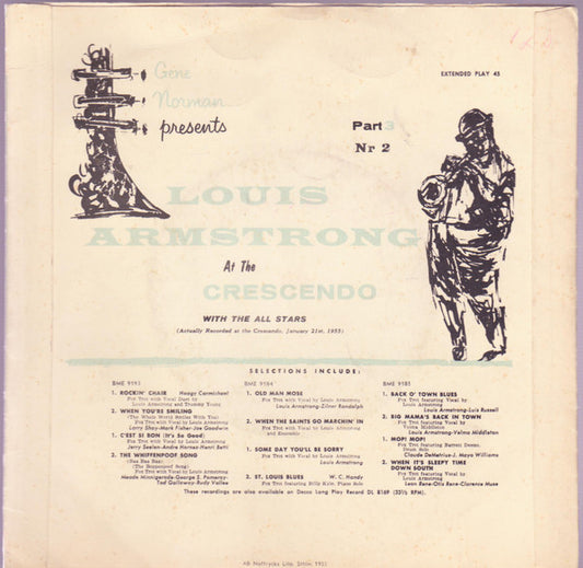 Louis Armstrong - At The Cresendo Vol 2, Part 3 - Sweden 7" 0 - VG+