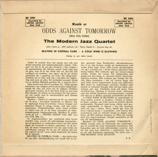 The Modern Jazz Quartet - Music From Odds Against Tomorrow - Sweden 7" 0 - VG