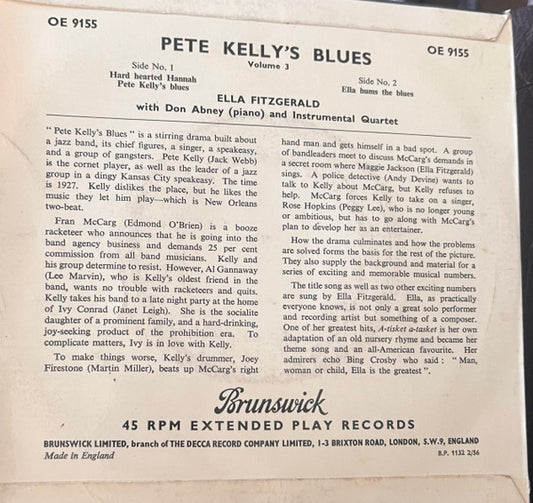Ella Fitzgerald - Pete Kelly's Blues (Volume 3) - UK 7" 1956 - VG+