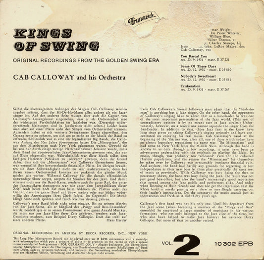 Cab Calloway And His Orchestra - 1931 - Kings Of Swing Vol. 2 - Germany 7" 0 - VG+