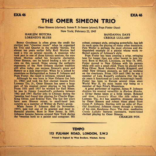 Omer Simeon Trio - The Omer Simeon Trio - UK 7" 1957 - VG+