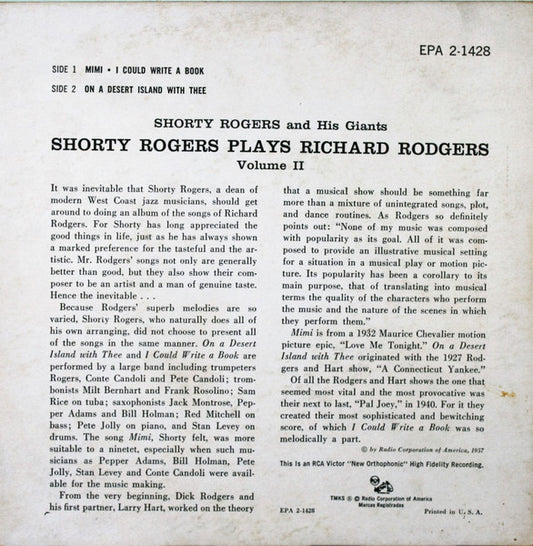 Shorty Rogers And His Giants - Shorty Rogers Plays Richard Rodgers Vol. II - US 7" 1957 - VG+