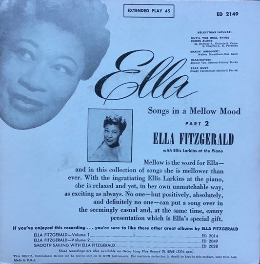 Ella Fitzgerald - Ella - Songs In A Mellow Mood Part 2 - UK 7" 1954 - VG+