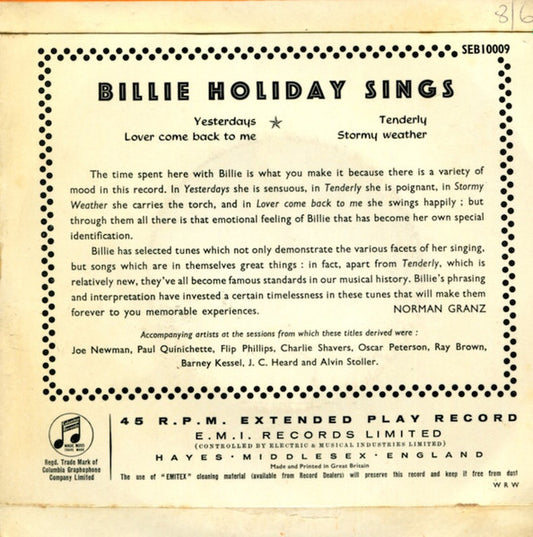 Billie Holiday - Billie Holiday Sings - UK 7" 1955 - VG+