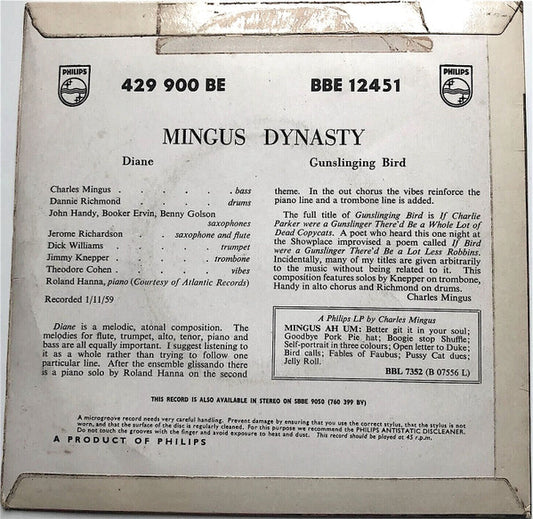 Charles Mingus And His Jazz Group - Mingus Dynasty - UK 7" 1960 - VG+