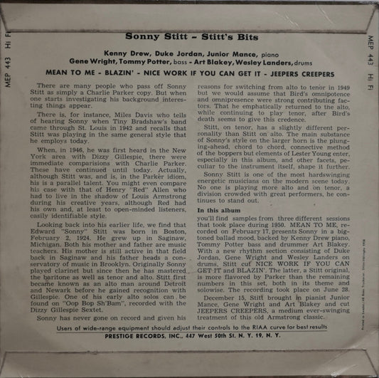 Sonny Stitt - Stitt's Bits - Sweden 7" 1958 - VG+
