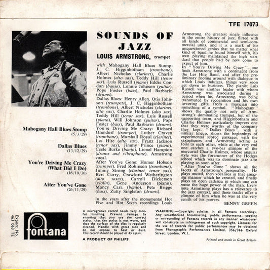Louis Armstrong - Sounds Of Jazz - UK 7" 1959 - VG+