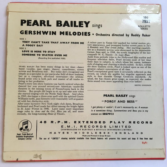 Pearl Bailey - Pearl Bailey Sings Gershwin Melodies - UK 7" 1959 - VG+