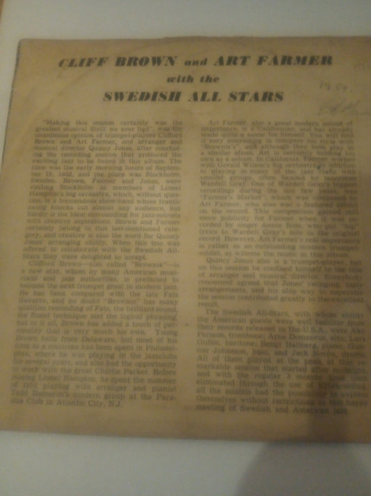 Clifford Brown And Art Farmer With The Swedish All Stars - Vol. 2 - UK 7" 1954 - VG+