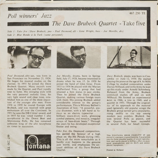 The Dave Brubeck Quartet - Take Five - France 7" 1959 - VG+