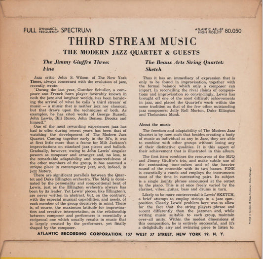 The Modern Jazz Quartet - Third Stream Music - Sweden 7" 0 - VG+
