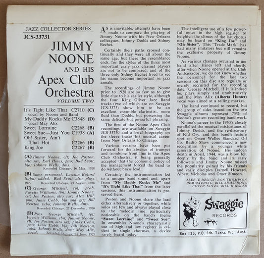 Jimmie Noone's Apex Club Orchestra - Jimmie Noone And HIs Apex Club Orchestra Volume Two - Australia 7" 0 - VG+Regular price £5.00 GBPRegular priceUnit price / per-