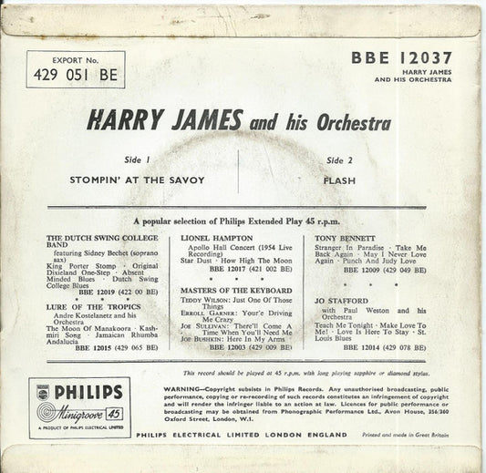 Harry James And His Orchestra - Stompin' At The Savoy / Flash - UK 7" 1956 - VG+Regular price £5.00 GBPRegular priceUnit price / per-