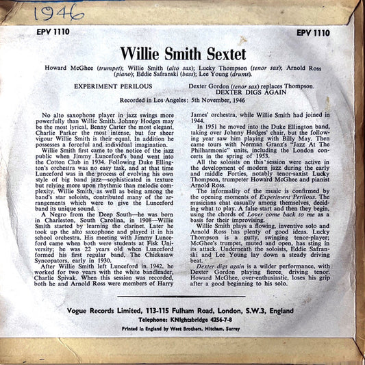 Willie Smith Sextet - After Hours - UK 7" 0 - VG+Regular price £5.00 GBPRegular priceUnit price / per-