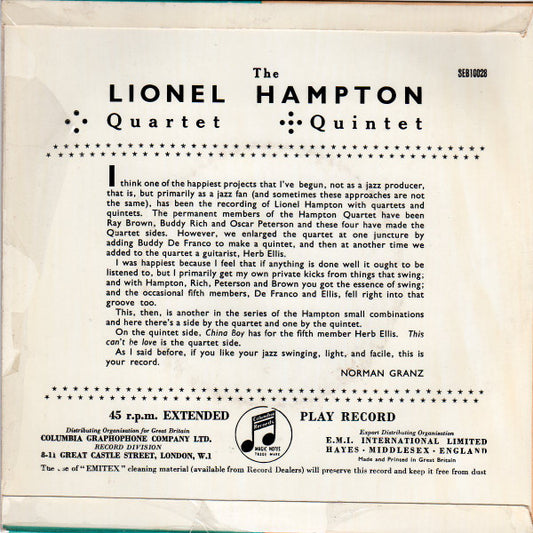 Lionel Hampton And His Quartet / Lionel Hampton Quintet - The Lionel Hampton Quartet - Quintet - UK 7" 1956 - VG+Regular price £5.00 GBPRegular priceUnit price / per-