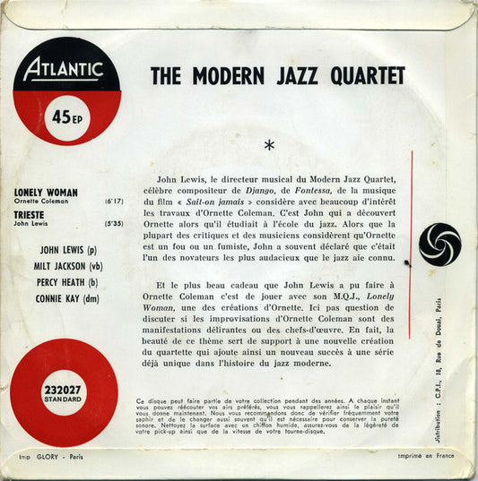 The Modern Jazz Quartet - Lonely Woman / Trieste - France 7" 1963 - VG+Regular price £5.00 GBPRegular priceUnit price / per-