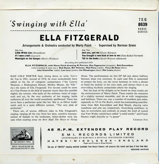 Ella Fitzgerald - Swinging With Ella - UK 7" 1959 - VG+Regular price £5.00 GBPRegular priceUnit price / per-