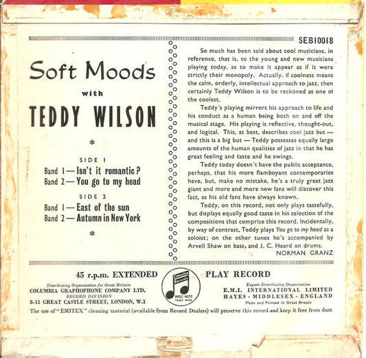 Teddy Wilson - Soft Moods With Teddy Wilson - UK 7" 1956 - VG+Regular price £5.00 GBPRegular priceUnit price / per-