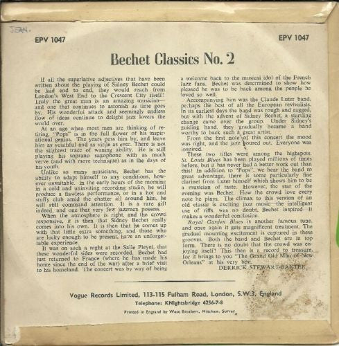 Sidney Bechet With Claude Luter Et Son Orchestre - Jazz Classics N° 2 - UK 7" 0 - VG+