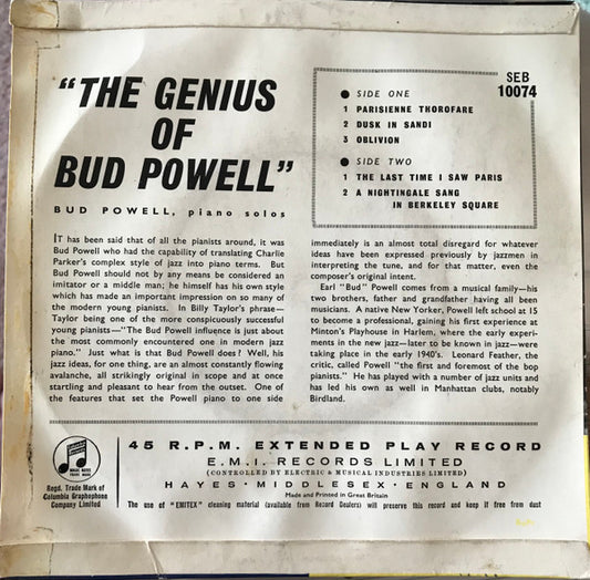 Bud Powell - The Genius Of Bud Powell - UK 7" 0 - VG+