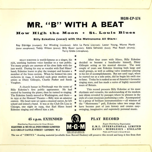 Billy Eckstine And The Metronome All Stars - Mr. "B' With A Beat (7", EP) UK 1956 NM or M-