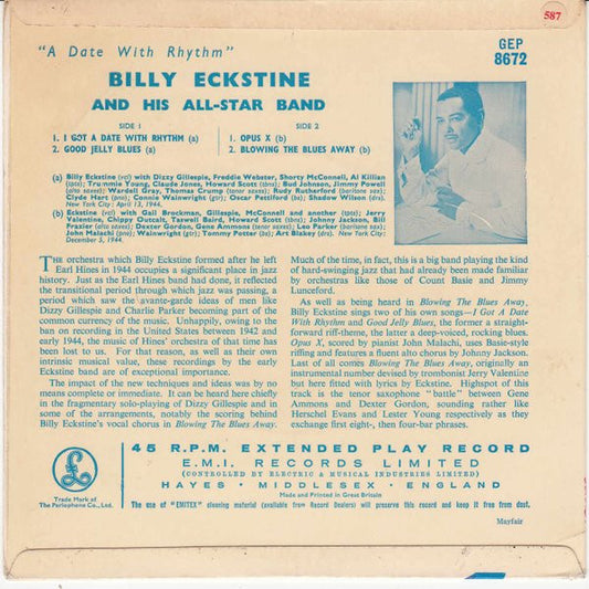 Billy Eckstine And His Orchestra - A Date With Rhythm (7", EP) UK 0 NM or M-
